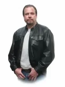 Black Very Soft Lightweight Lambskin. Red Cotton backed Satin. Hidden Brass Snaps, Button down Collar. Arms tailored long with extra snap at cuff to keep wind out . Available in Full Collar only. " Guaranteed 4 Life"